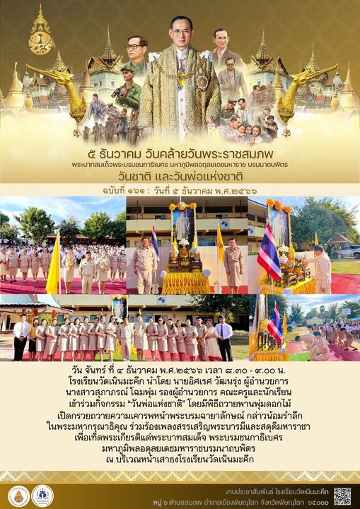 ทำพิธี วันที่ 5 ธันวาคม วันคล้ายวันพระราชสมภพพระบาทสมเด็จพระบรมชนกาธิเบศร มหาภูมิพลอดุลยเดชมหาราช บรมนาถบพิตร วันชาติ และวันพ่อแห่งชาติ