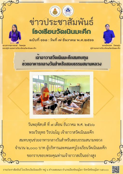 เจ้าอาวาสวัดเนินมะคึกสมทบทุน ช่วยอาหารกลางวันสำหรับสอบธรรมสนามหลวง