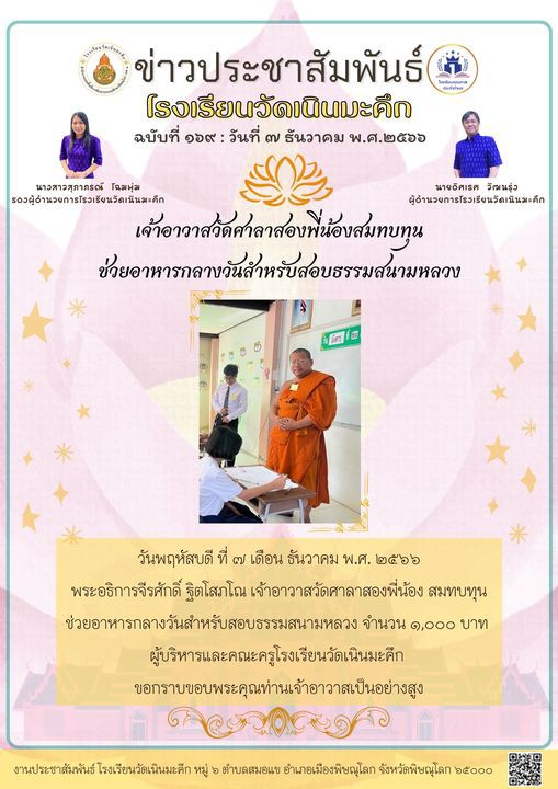เจ้าอาวาสวัดศาลาสองพี่น้องสมทบทุนช่วยอาหารกลางวัน