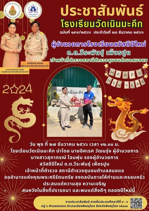 ผู้อำนวยการโรงเรียนสวัสดีปีใหม่ ด.ต.วีระพันธ์ุ เพ็ชรปูน เจ้าหน้าที่ตำรวจ สถานีตำรวจชุมชนตำบลสมอแข