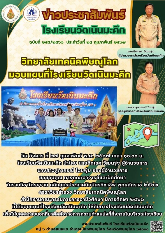 วิทยาลัยเทคนิคพิษณุโลกมอบแผนที่โรงเรียนวัดเนินมะคึก