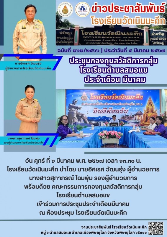 ประชุมกองทุนสวัสดิการกลุ่ม โรงเรียนตำบลสมอแข ประจำเดือน มีนาคม