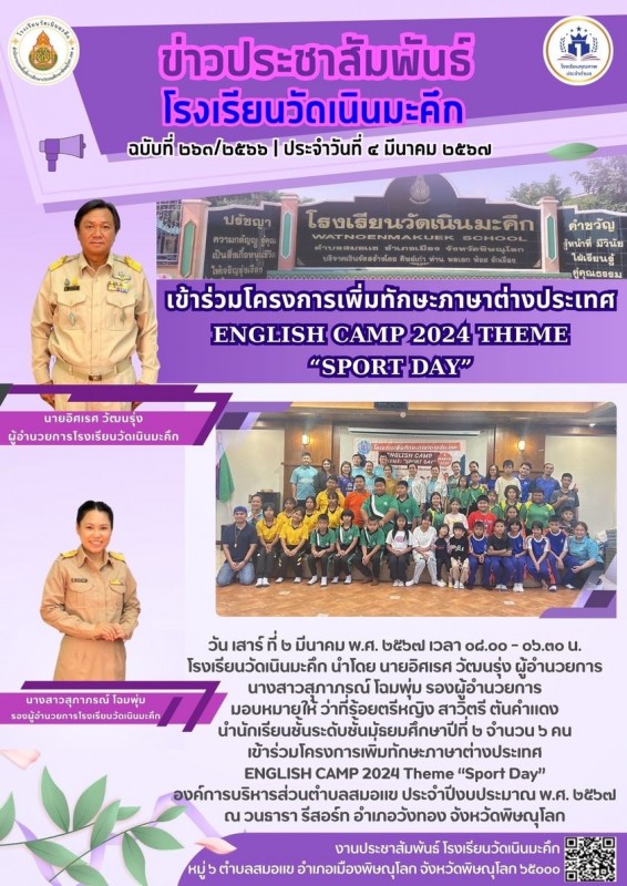 เข้าร่วมโครงการเพิ่มทักษะภาษาต่างประเทศ ENGLISH CAMP 2024 THEME “SPORT DAY