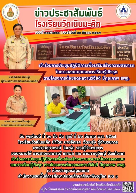 เข้าร่วมการประชุมปฏิบัติการเพื่อเสริมสร้าง ความสามารถในการออกแบบและการเรียนเชิงรุก ตามโครงการต่อยอดผลงานวิจัยดี มีคุณภาพ สพฐ.
