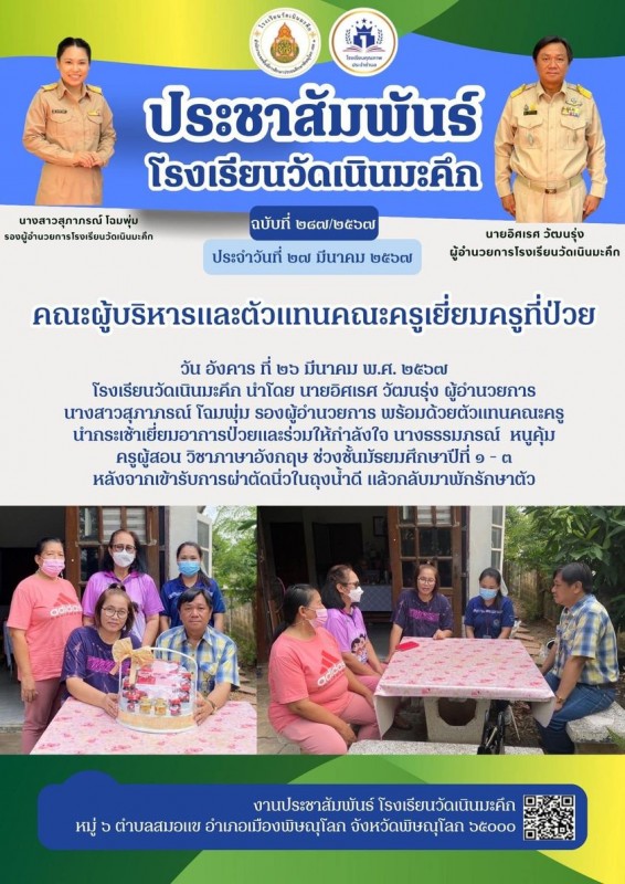 คณะผู้บริหารและตัวแทนคณะครูเยี่ยมครูที่ป่วย