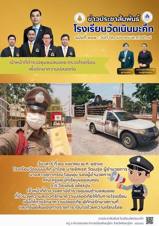 เจ้าหน้าที่ตำรวจชุมชนสมอแข ตรวจโรงเรียน เพื่อรักษาความปลอดภัย
