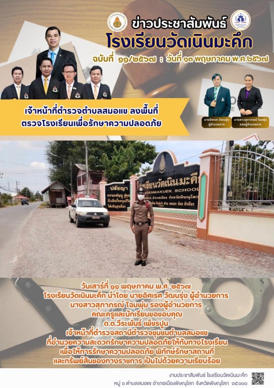 เจ้าหน้าที่ตำรวจตำบลสมอแข ลงพื้นที่ตรวจโรงเรียนเพื่อรักษาความปลอดภัย