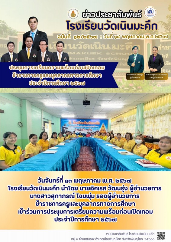 ประชุมการเตรียมความพร้อมก่อนเปิดเทอม จ้าราชการครูและบุคลากรทางการศึกษา ประจำปีการศึกษา 2567