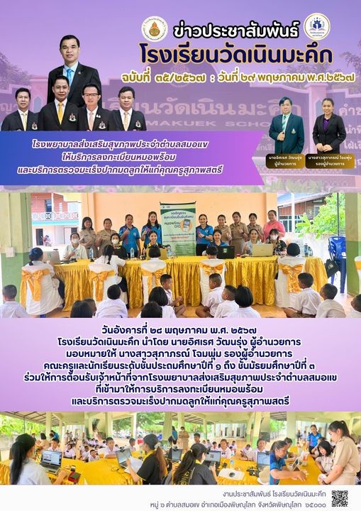 “โรงพยาบาลส่งเสริมสุขภาพประจำตำบลสมอแข ให้บริการลงทะเบียนหมอพร้อม และบริการตรวจมะเร็งปากมดลูกให้แก่คุณครูสุภาพสตรี” |