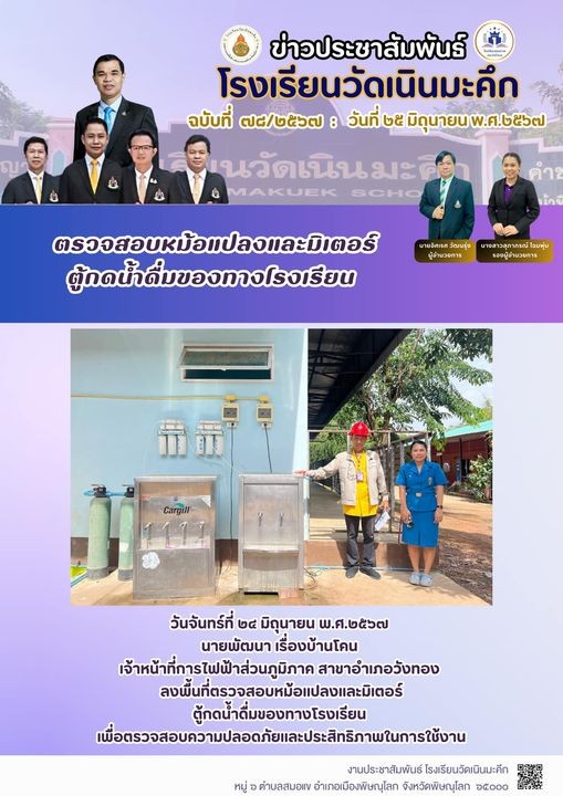 “ ตรวจสอบหม้อแปลงและมิเตอร์ตู้น้ำดื่มของทางโรงเรียน”