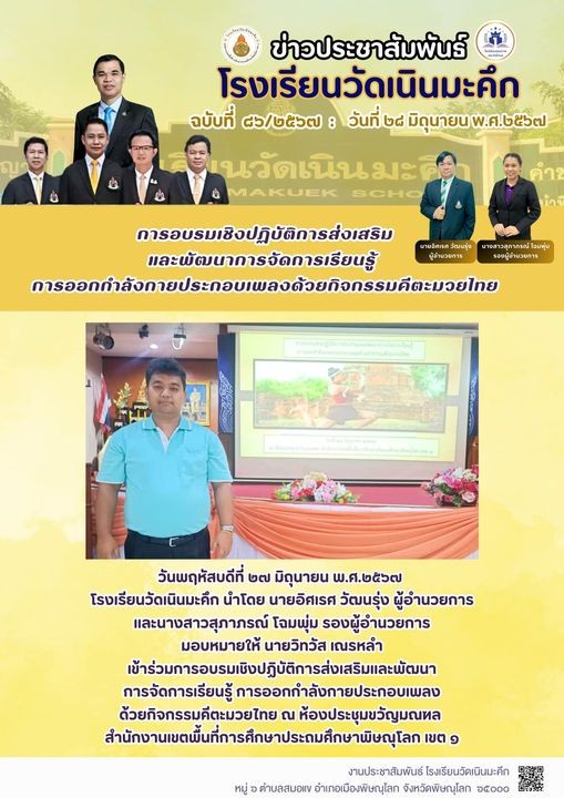 “การอบรมเชิงปฏิบัติการส่งเสริมและพัฒนาการจัดการเรียนรู้ การออกกำลังกายประกอบเพลงด้วยกิจกรรมคีตะมวยไทย”
