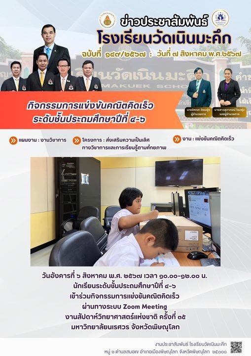 “กิจกรรมการแข่งขันคณิตคิดเร็ว ระดับชั้นประถมศึกษาปีที่ 4-6“