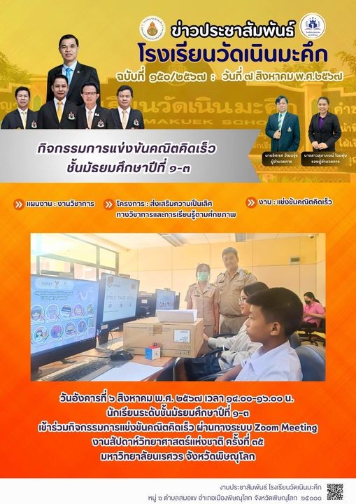 “กิจกรรมการแข่งขันคณิตคิดเร็ว ระดับชั้นมัธยมศึกษาปีที่ 1-3“