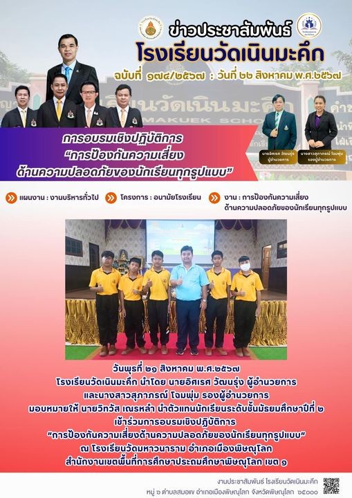 ”การอบรมเชิงปฏิบัติการ “การป้องกับความเสี่ยงด้านความปลอดภัยของนักเรียนทุกรูปแบบ“