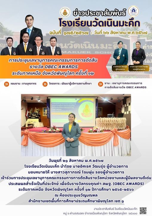 ”การกระขุมเลขานุการคณะกรรมการการตัดสิน รางวัล OBEC AWARDs ระดับภาคเหนือ จังหวัดพิษณุโลก ครั้งที่ 12“