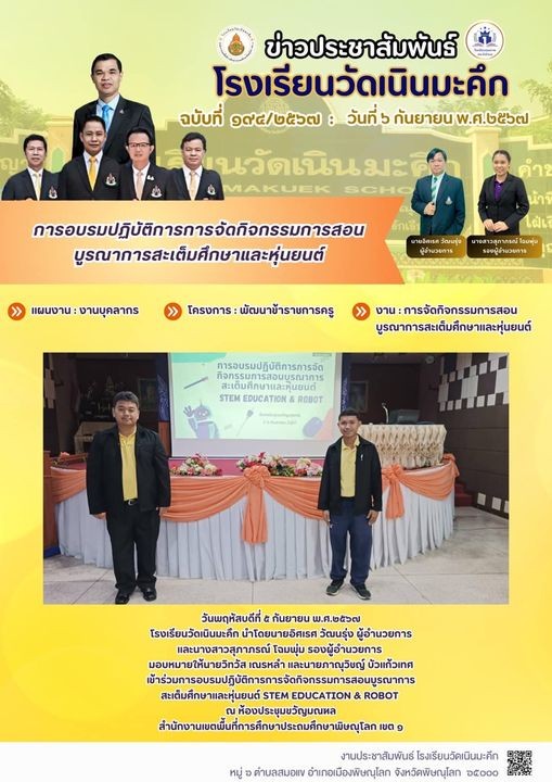 “การอบรมปฏิบัติการการจัดกิจกรรมการสอนบูรณาการสะเต็มศึกษาและหุ่นยนต์“
