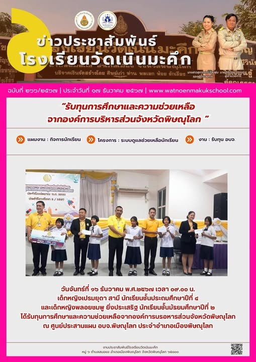 “รับทุนการศึกษาและความช่วยเหลือจากองค์การบริหารส่วนจังหวัดพิษณุโลก“