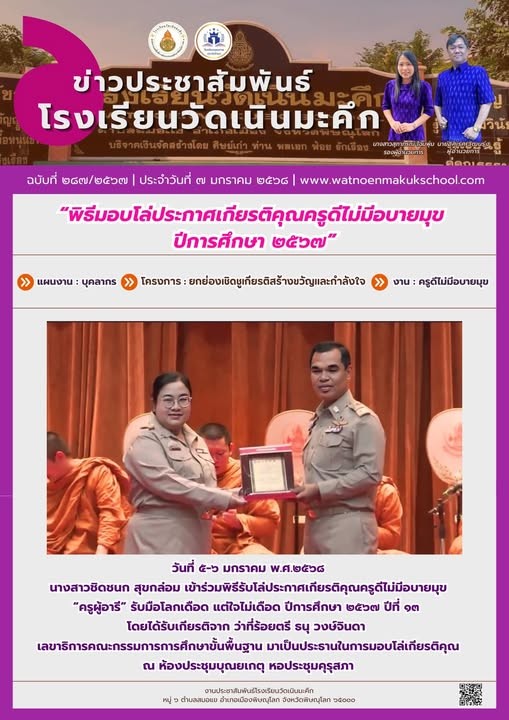 “พิธีมอบโล่ประกาศเกียรติคุณครูดีไม่มีอบายมุข ปีการศึกษา 2567“