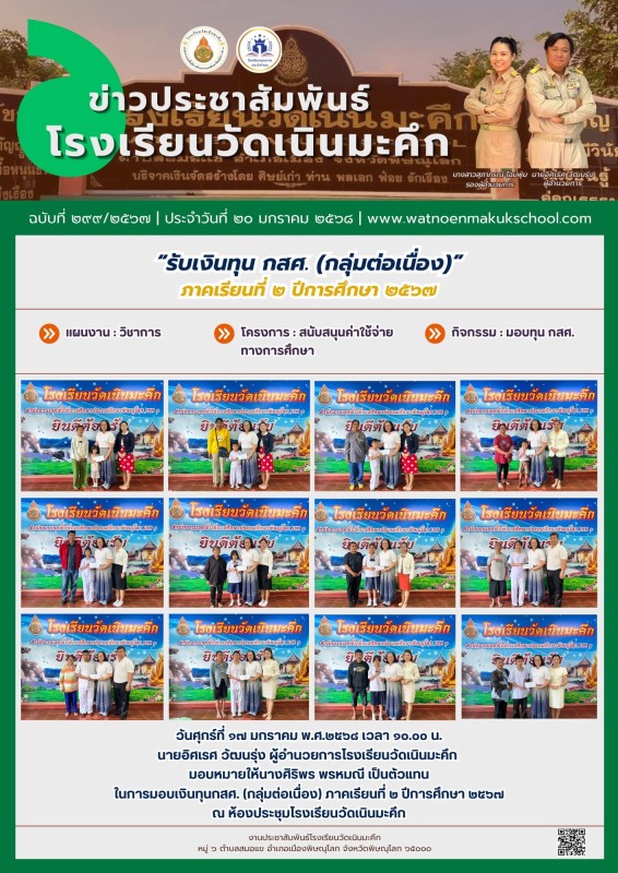 “รับเงินทุน กสศ.(กลุ่มต่อเนื่อง)“ ภาคเรียนที่ 2 ปีการศึกษา 2567